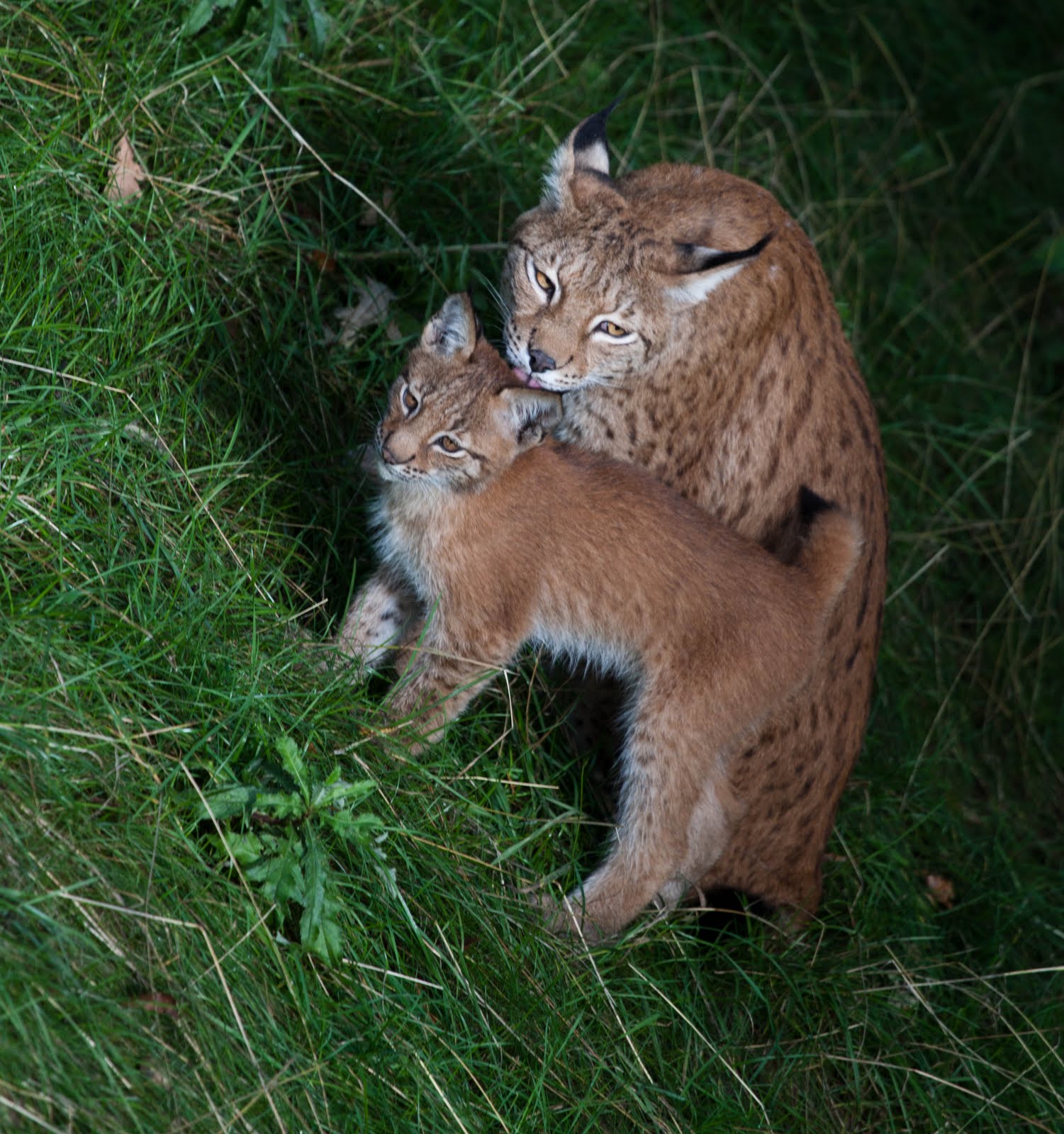Parningstiden är i mars-april. I maj-juni föder honan en till fyra ungar som hon ensam tar ansvar för. Ungarna följer sin mamma i nästan ett år. Av henne lär de sig bl a att jaga och döda byten. När ungarna är knappt två år blir de könsmogna.