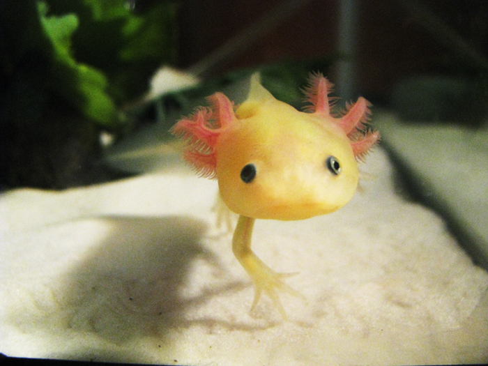 Här kommer den märkligaste saken med axolotlerna: De är helt vattenlevande, men kan i vissa fall genomgå en metamorfos och förvandlas till landlevande axolotler. De får då mer släta sidor av huvudet och gälarna avvecklas, bland annat. Ett populärt namn för dessa individer är "morpholotl".
