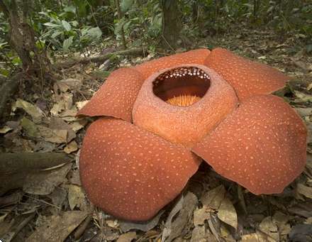 Växten Rafflesia arnoldii har den största blomman i världen. Den kan bli 1 m i diameter och väga uppåt 11 kg. För att locka till sig pollinerande insekter avger blomman en stank av ruttet kött, vilket har gett den smeknamnet "corpse flower". Den fascinerande blomman finns bara i de hotade regnskogarna på Borneo och Sumatra, och även här är den svår att hitta eftersom den bara blommar i några dagar, medan knoppen behöver flera månader på sig för att utvecklas.