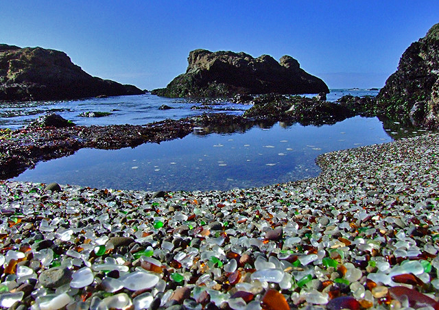 Glass Beach i Kalifornien ser vid första anblicken ut att vara full av färgglada stenar. Men stranden var i början av 1900-talet en dumpningsplats för sopor, så "stenarna" är i själva verket glas som i årtionden slipats av vågorna. (x)